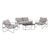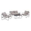 Salon de jardin 4 places avec table en métal, avec dossier et assise maintenus par des sangles