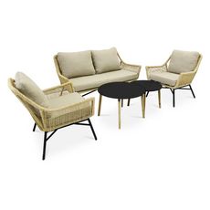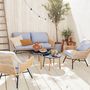 Les + produit- Effet corde, design et tendance - Tables gigognes, pratiques- Mix matière- Coussins à bords gansésCaractéristiques techniques :1 canapé 2 places + 2 fauteuils + 2 tables gigognesNombre d'assises : 4Fauteuils/Canapé- Matière de la structure de l'assise : aluminium- Matière des pieds :
