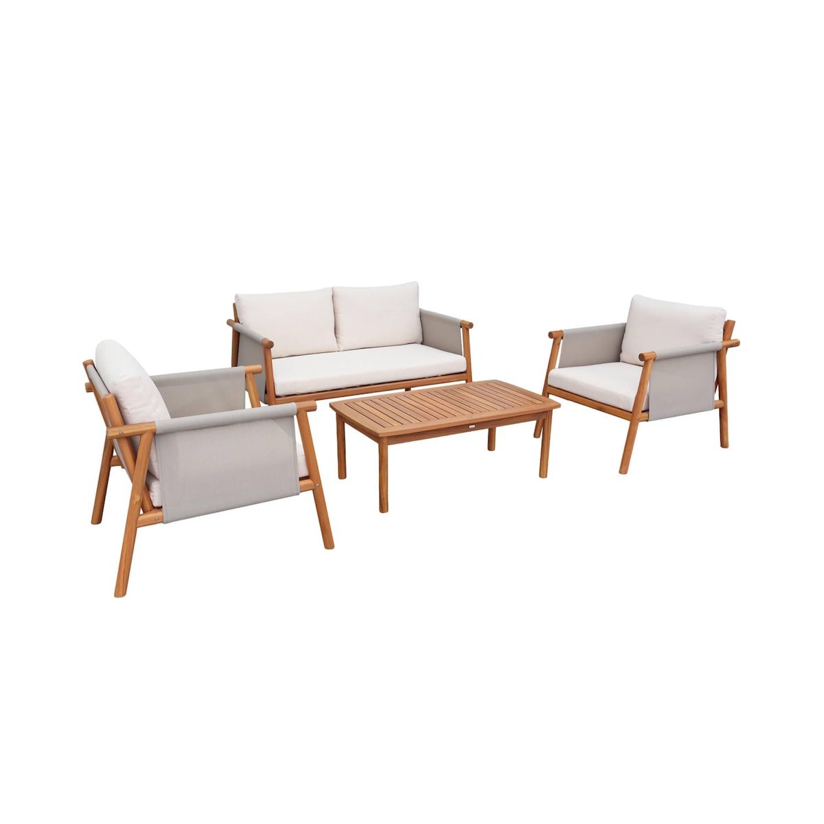 Salon de jardin bois d'acacia et tissu beige 4 places - Koa
