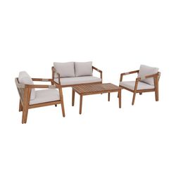 Les + produit :Structure en bois d'acacia écoresponsablesAssise confortableCoussins de dossier épaisDossier et accoudoirs avec cordageApportez une touche d'élégance et de confort à votre extérieur avec notre salon de jardin, parfait pour tous vos moments de détente. Sa structure en bois d'acacia, p