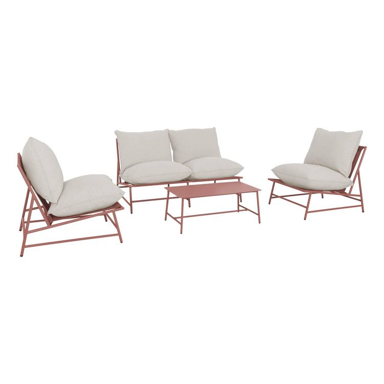 Salon de jardin en acier et textilène SOFIA, 4 places, table rectangulaire