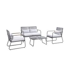 Relaxez vous avec le salon de jardin Foggia 4 places. Conçu en acier, ce salon de jardin a l'avantage de demander très peu d'entretien et de tenir dans le temps. Léger et donc facile à déplacer, il trouvera facilement sa place sur votre balcon ou votre terrasse. Vous pouvez accueillir jusqu'à 4 personnes avec les deux fauteuils et le canapé 2 places. Une table rectangulaire vient compléter l'ensemble pour vous permettre de poser vos objets. Avec les coussins en polyester confortables, passez des moments conviviaux avec votre famille ou vos amis en profitant de votre extérieur.