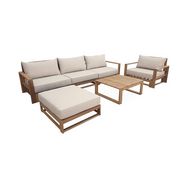 Salon de jardin en bois d'acacia 5 places - Mendoza - Canapé, fauteuils et table basse en acacia, 6 éléments modulables, design