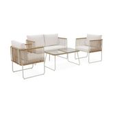 Salon de jardin en corde résine plastique et acier galvanisé, table basse en verre trempé, 4 places