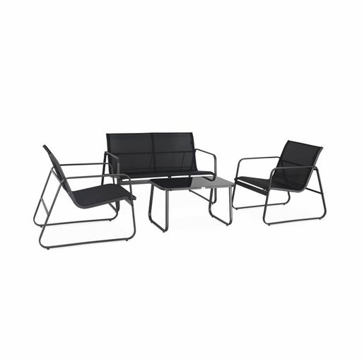 Salon de jardin en métal et textilène pour 4 personnes, design