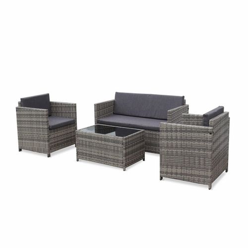 Salon de jardin en résine tressée 4 places Perugia - 1 canapé, 2 fauteuils, une table basse