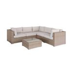Très joli salon, qui fait bcp d’effet. Les coussins ne sont pas blanc écru comme sur la photo, ils sont beige/taupe. Moins beau mais moins salissant. Les housses sont top, faciles à mettre. Je redoute par contre que les coussins d’assise ne s’affaissent vite.