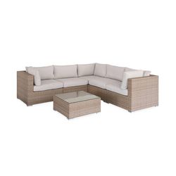 Salon de jardin reçu rapidement en 2 cartons À l’ouverture, 1 assise d’angle déformée avec une barre de fer tordu et pas mal d’endroit où le salon de jardin se « dénude » Néanmoins, celui une fois assemblé et soudé ensemble, le rendu est sympa, les coussins sont confortables et la table d’appoint fait le taff. À voir dans le temps comment il vieilli. Rapport qualité prix correct, ce n’est pas de la grosse qualité mais ça fais le taff. Attention à la soit disante couleur « beige » qui n’est absolument pas beige