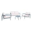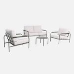Laissez vous séduire par le salon de jardin Luanda. Conçu en acier, sa structure est robuste, durable et nécessite très peu d'entretien. On aime les lignes arrondies qui apportent de la modernité. Les coussins ont une épaisseur de 12 cm et 17cm, ce qui rend le salon de jardin vraiment confortable. La table ronde vous permet de poser vos petits objets et passer les soirées d'été avec vos amis.