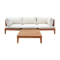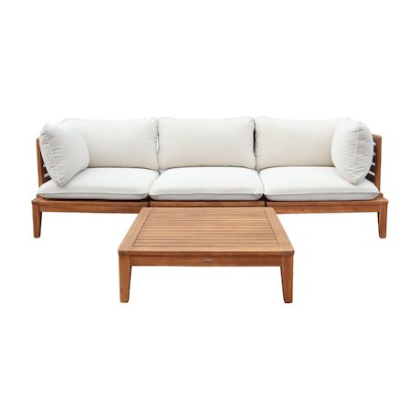 Salon de jardin modulable bois d'acacia et bouclette 3 places beige - Yona