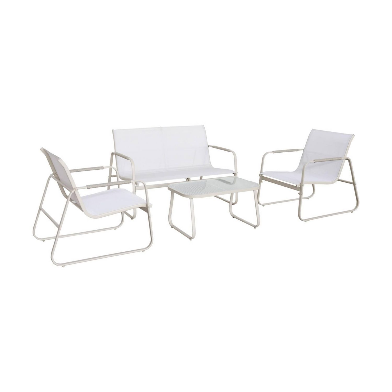 Salon de jardin NOTO acier, 4 places, un canapé, une table, deux fauteuils textilene