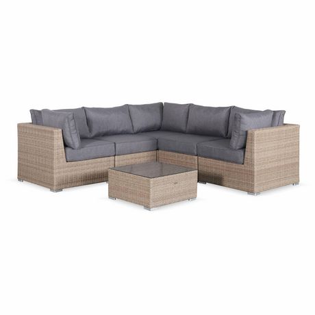 satisfaite de mon achat , très confortable, coussins très épais , rapide à monter . seul petit bémol, il est plus foncé que sur les photos , mais ca me va