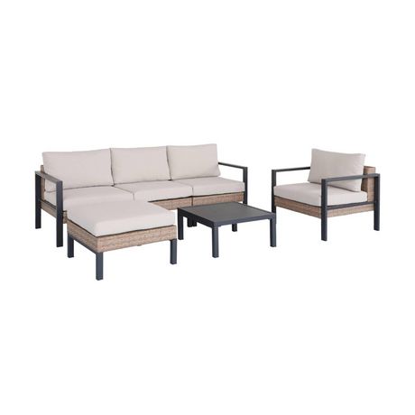 Le mobilier de jardin VELLETRI est le choix idéal pour profiter du beau temps. Composé de 5 modules, cet ensemble de mobilier d'extérieur vous offrira de nombreuses assises. Modulable, il vous offre la possibilité de le disposer comme vous le souhaitez sur votre terrasse ou votre balcon. Son design bi-matière, tendance et contemporain, ne manquera pas d'attirer le regard et apportera une touche d'élégance avec ses sièges en résine tressée au look original et naturel. La structure en aluminium donne à l'ensemble du meuble un aspect moderne et harmonieux. Ce mobilier de jardin a de quoi satisfaire tout le monde !