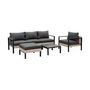 Le salon VILLETRIE est un excellent choix pour une utilisation en extérieur grâce à son cadre en aluminium solide, qui ne rouille pas avec le temps. Les coussins sont déhoussables et lavables, ce qui permet de les garder facilement propres. Ils sont également résistants aux UV et aux intempéries.