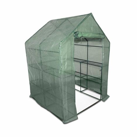 Cette serre de jardin est parfaite pour cultiver vos fruits et légumes. Elle les protège l',hiver et favorise leur croissance en été. L',aération est importante pour les plantes, cette serre est équipée d',une porte enroulable pour un accès facile aux cultures et pour renouveler l',air. Cette porte est à fermeture éclair et se roule et s',attache à l',aide de rubans. La serre est dotée de 8 étagères de chaque côté, composées de 1 tablette en acier chacune. La serre est livrée avec un kit d',ancrage.