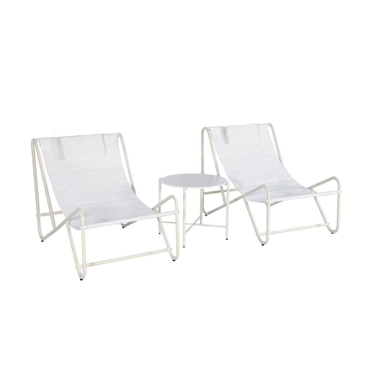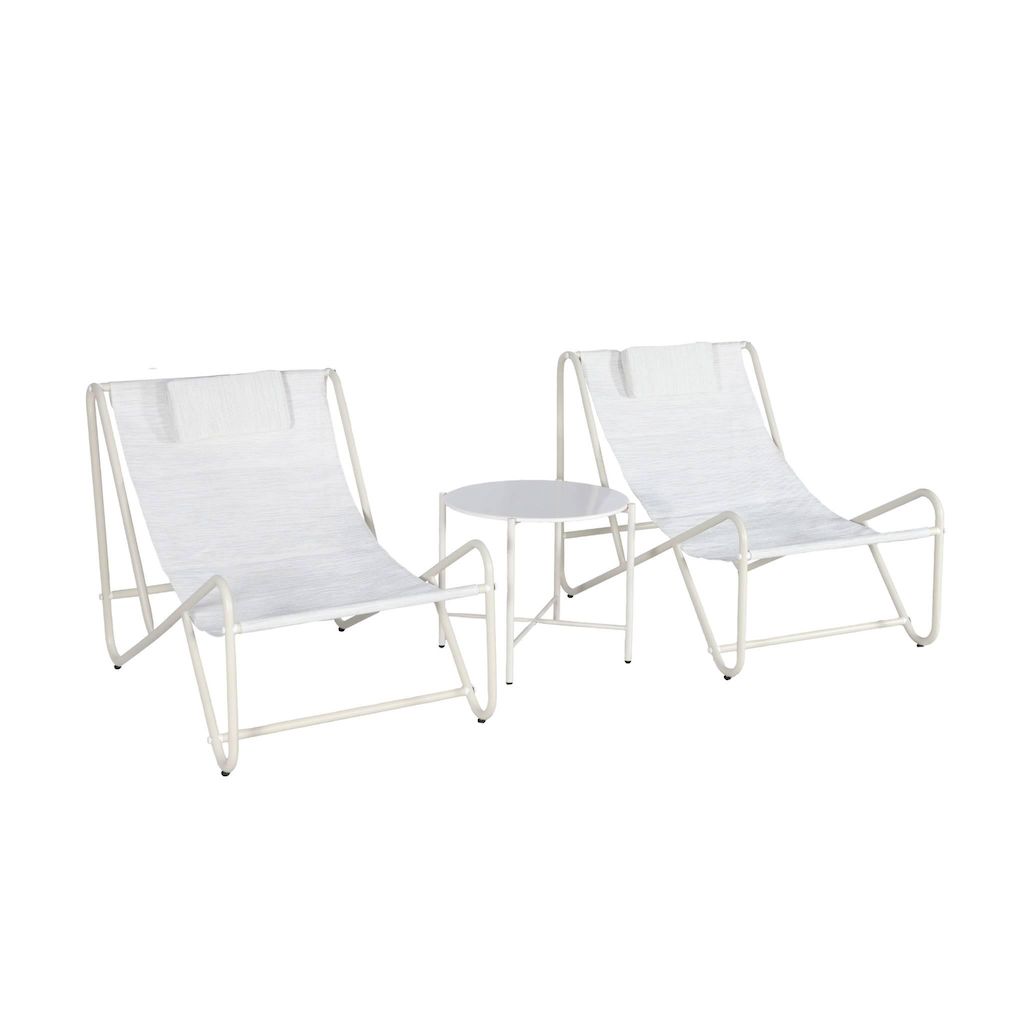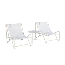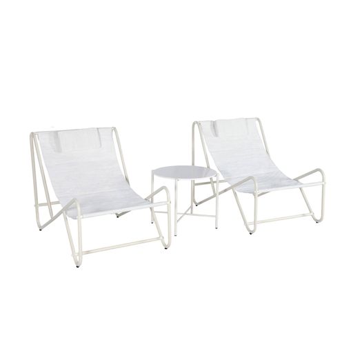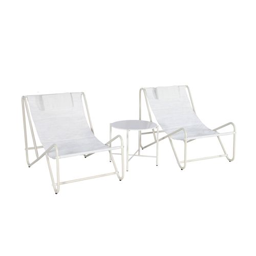 Set de 2 fauteuils relax beige avec table ronde. acier et textilène - Salina
