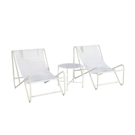 Les + produit : 2 fauteuils relaxTable rondeStructure en acierInstallez-vous confortablement dans le petit salon de jardin Salina et détendez-vous un moment. Ses deux fauteuils en textilène beige offrent un confort relaxant, parfait pour profiter du soleil, d'un bon livre ou d'une conversation tranq