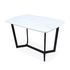 Le piétement en métal noir assure une stabilité robuste, complété par des pieds ajustables en hauteur. Son plateau en MDF, habillé d'un revêtement effet marbre, ajoute une note de sophistication à votre espace repas. Optez pour cette table pour une solution pratique et stylée, créant ainsi un coin repas convivial et tendance.