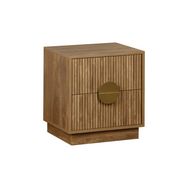 Table de chevet 2 tiroirs décor bois de manguier rainuré. poignées en métal doré. L42 x P38 x H50cm