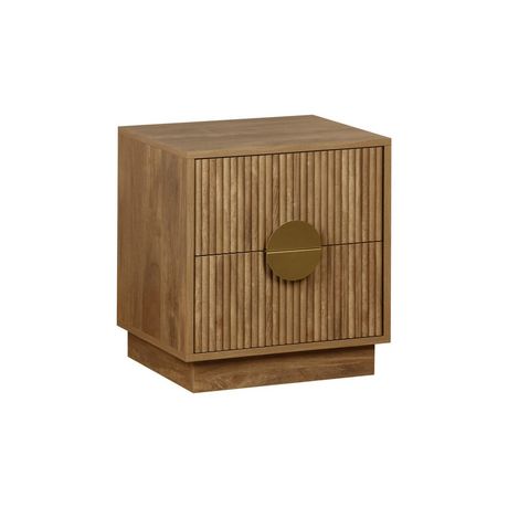 Sa couleur effet manguier s'adaptera facilement à votre décoration d'intérieur. Sa texture rainurée et ses poignées en métal doré ajoutent une touche élégante et se distinguent des tables de chevet plus conventionnelles.