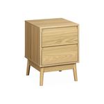 Invitez le charme scandinave à votre chevet avec cette délicate table de nuit. Sa structure en décor bois lui offre un aspect authentique qui sera du plus bel effet dans votre chambre. Son piètement compas quant à lui, ajoute un charme scandinave la rendant unique. Dans ses deux tiroirs, vous pouvez facilement ranger vos livres, lunettes et autres accessoires. On vous conseille d'ajouter sur son plateau une jolie lampe, pour un rendu super tendance !