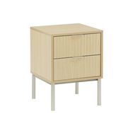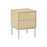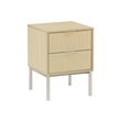 Les + produitBois rainuré Poignées et piétement en métal couleur champagne 2 tiroirs Craquez pour cette table de chevet au style moderne qui marie avec finesse l'élégance et l'utilité. Son aspect bois rainuré ajoute une note naturelle et chaleureuse à l'ambiance de votre chambre à coucher. Les détai