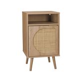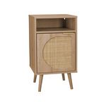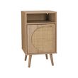 Table de chevet. Eva. décor bois et cannage arrondi. une porte. un espace de rangement. L40 x l39 x H70cm