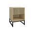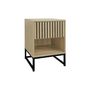 Table de chevet style contemporain avec 1 tiroir effet bois rainuré (système d'ouverture par pression) et 1 niche. piètement en métal noir