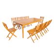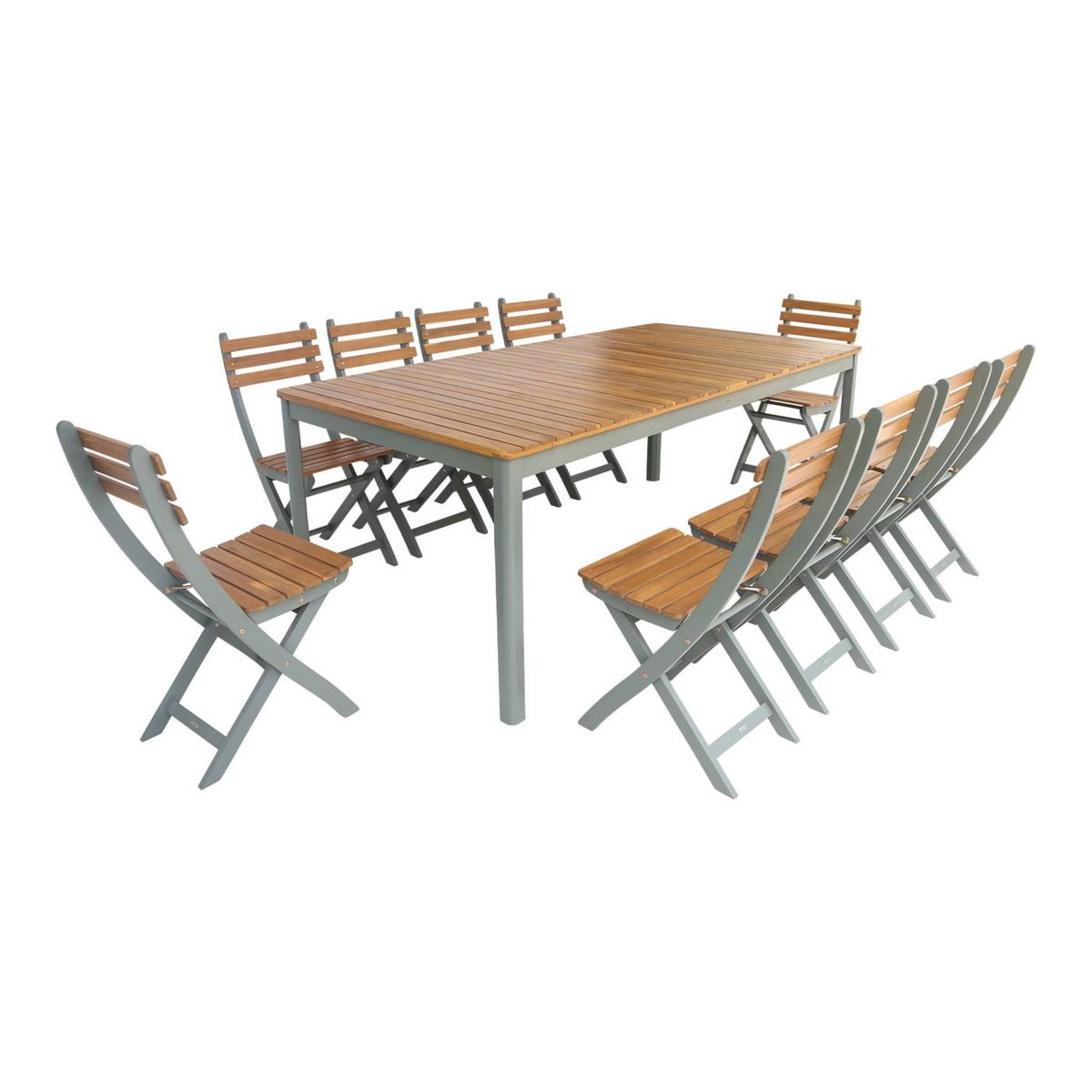 Table de jardin acacia avec coins arrondis, 10 chaises, 200 x 100 x 75 cm