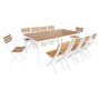 Table de jardin bois d'acacia + 10 assises naturelle. 200 x 100 x 75 cm