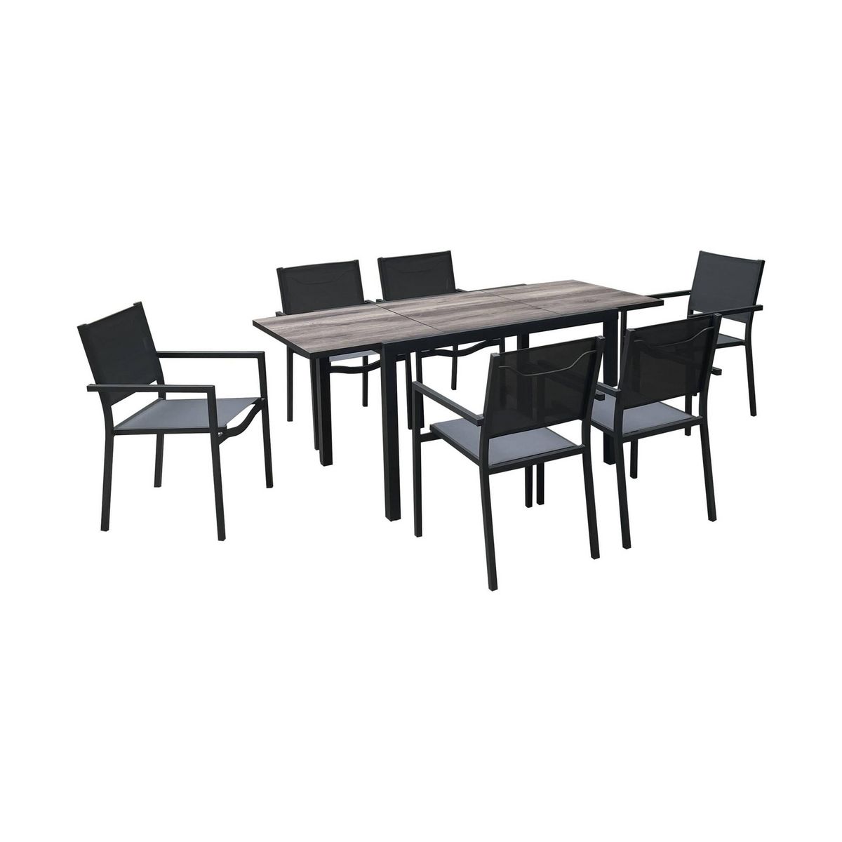 Table de jardin aluminium 120/180cm avec 6 chaises empilables aluminium et textilène