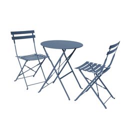 Table de jardin bistrot pliante métal + 2 assises bleu grisé Ø60 x 70cm. acier thermolaqué