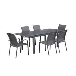 Table de jardin extensible aluminium + 6 assises anthracite. 4 chaises. 2 fauteuils. 6 places. textilène