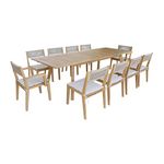 Table de jardin extensible bois d'acacia + 10 assises PALENA et GALENA 275 x 100 x 75 cm naturel et beige