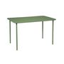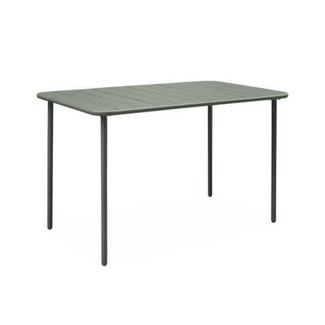 Table de jardin métal 4 places. vert. Amelia. 120x70cm. traitement antirouille. lattes et bords arrondis