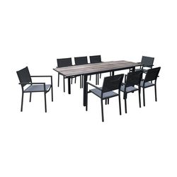 Table jardin extensible aluminium + 8 assises empilables aluminium et textilène