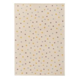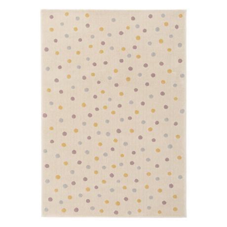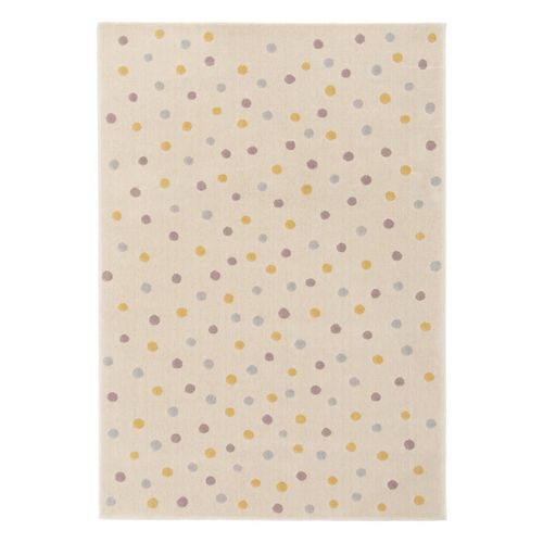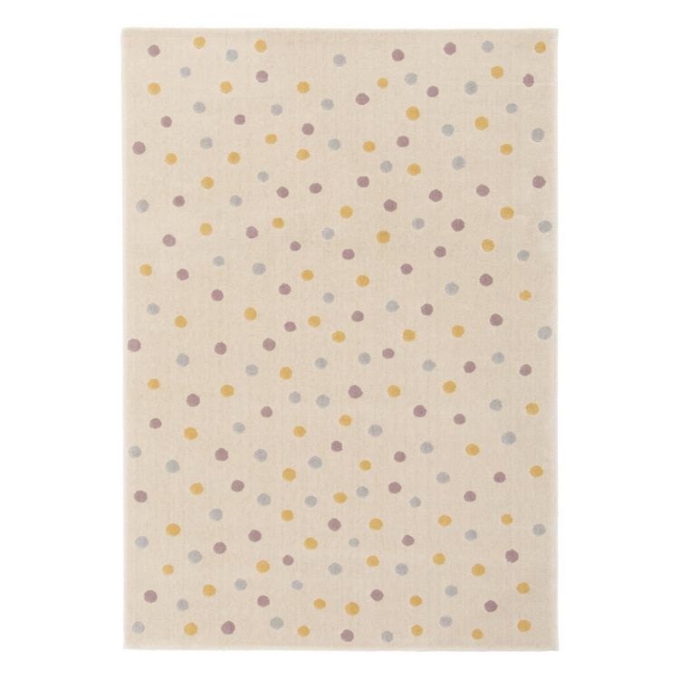 Tapis enfant à pois. crème. bleu. jaune et violet. poils ras