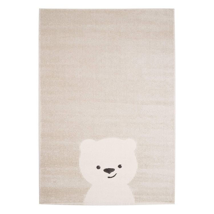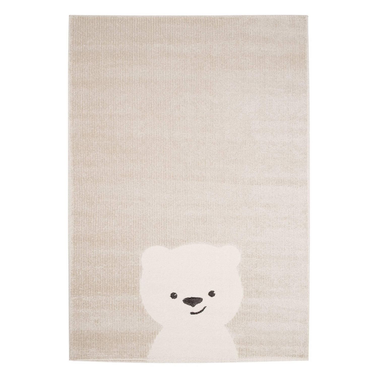 Tapis enfant Beige / Crème, tapis intérieur petit ourson, poils ras, tapis frisé très doux
