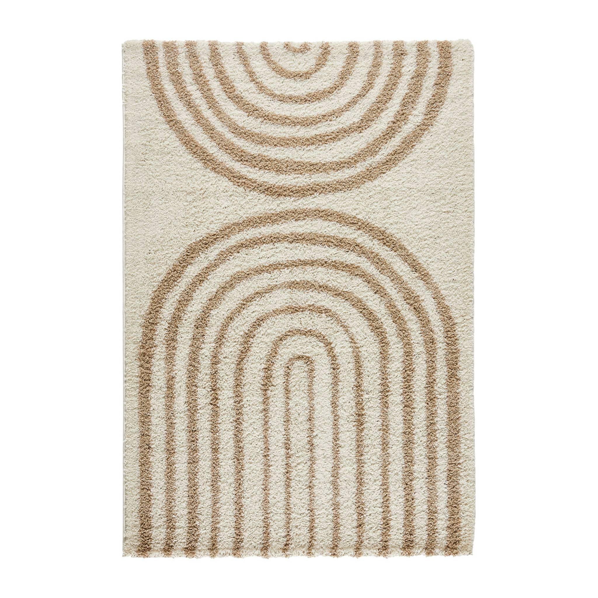 Tapis intérieur shaggy, motifs géométriques arc-en-ciel, beige, poils longs