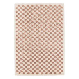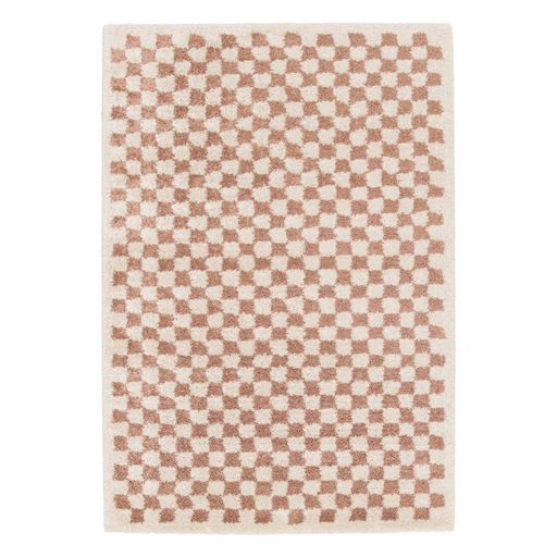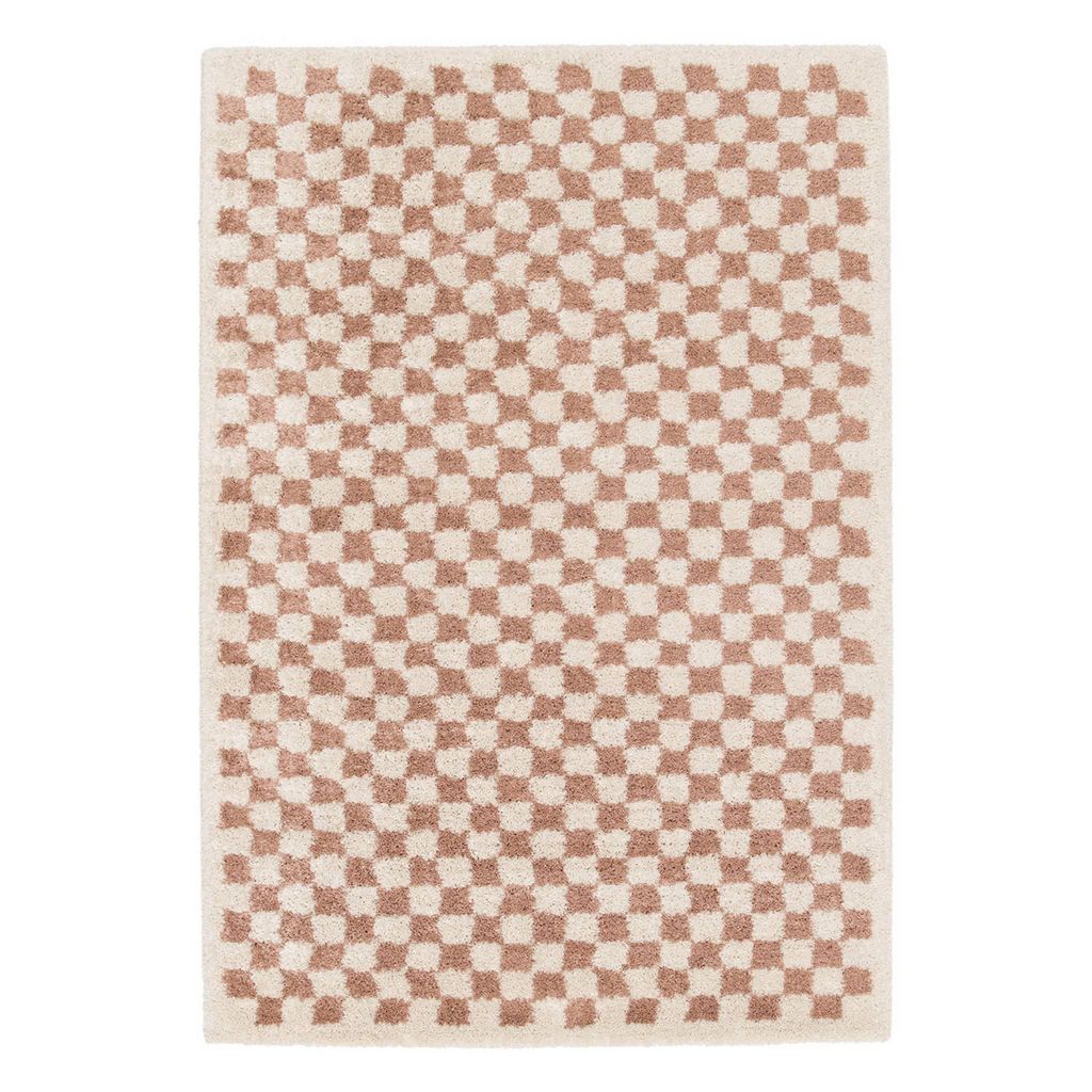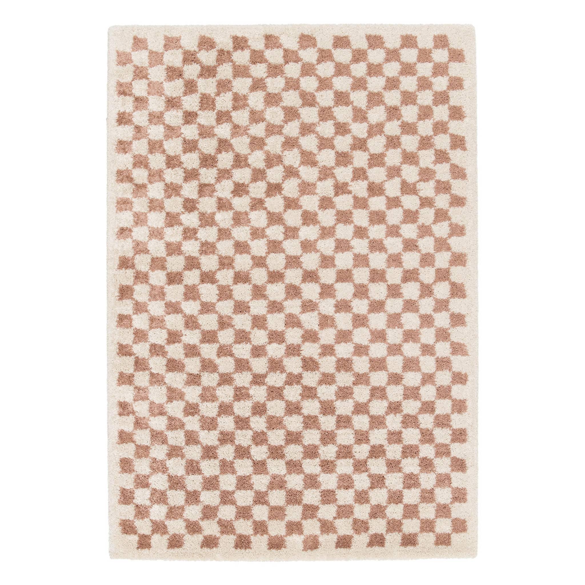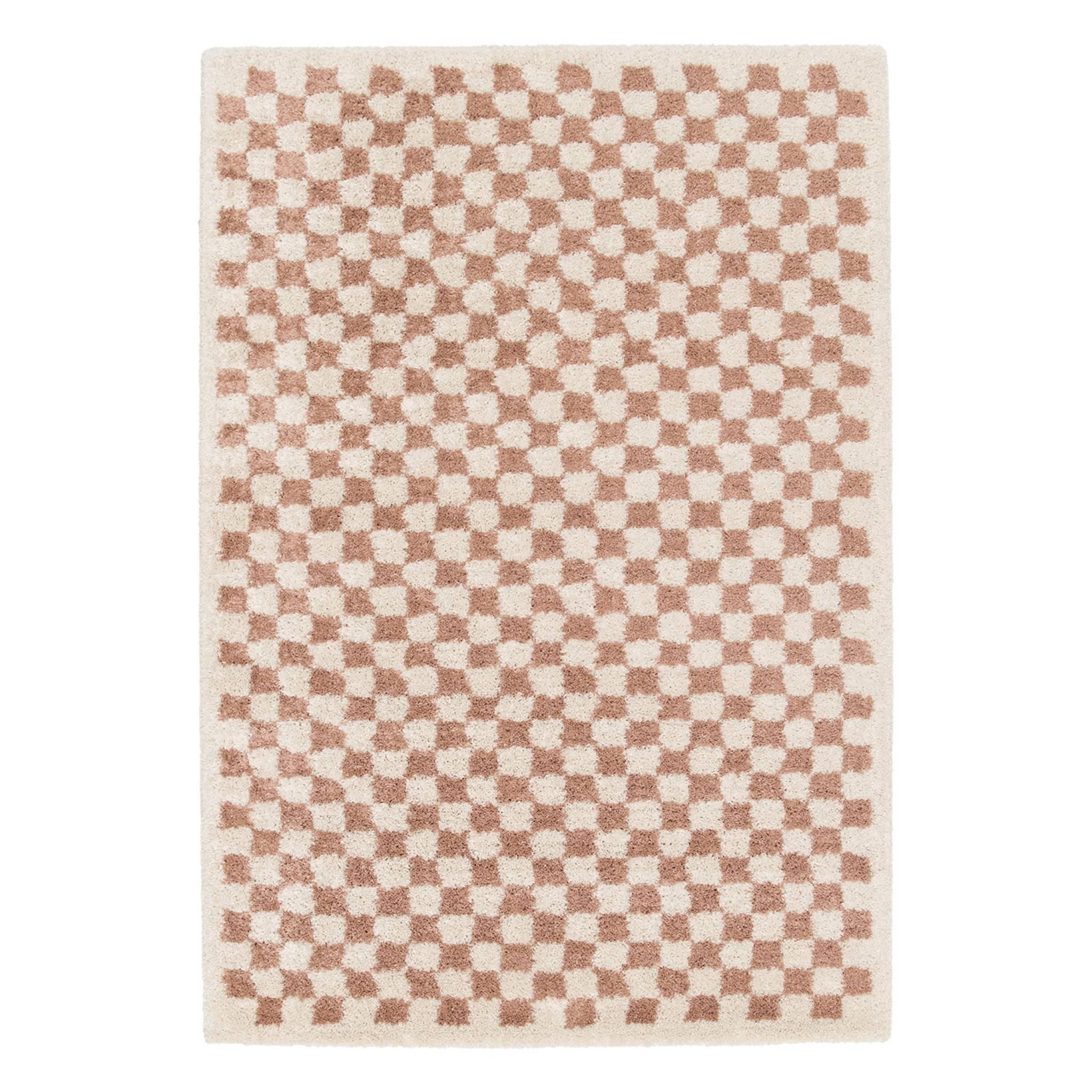 Tapis intérieur shaggy poils longs 80x150cm damier vieux rose et crème
