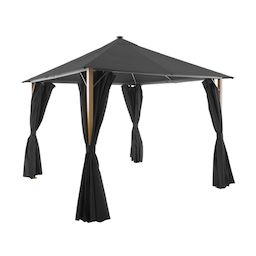 Tonnelle 3x3m aluminium effet bois avec rideaux et led anthracite - Veluna