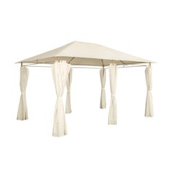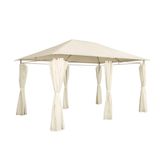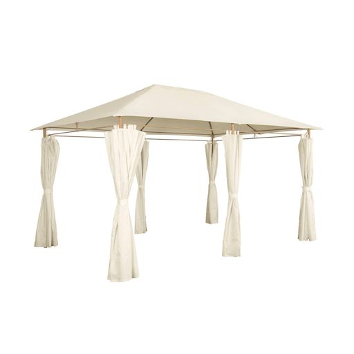 Tonnelle 3x4 m - Divio - Imitation bois. toile écru - Pergola avec rideaux. tente de jardin. barnum. chapiteau. réception
