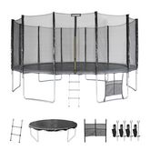 Trampoline 490cm gris avec filet de protection. échelle. bâche. filet pour chaussures. kit d'ancrage