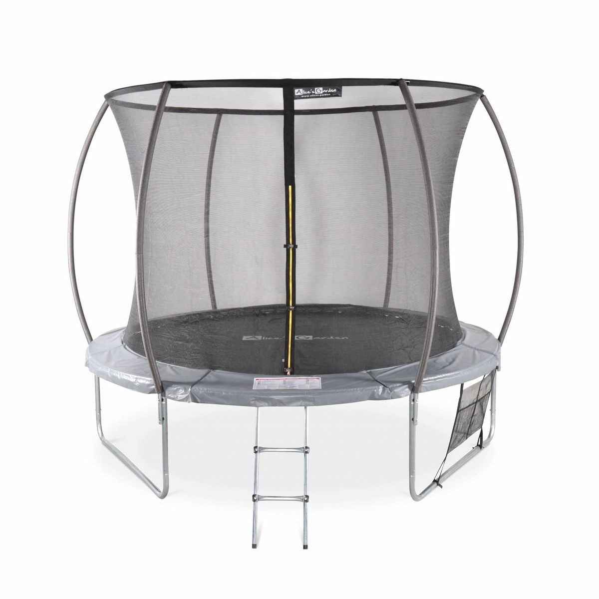 Trampoline Ø 305cm - Mars Inner XXL- trampoline de jardin gris avec filet de protection intérieur. échelle. bâche. filet pour chaussures et kit d'ancrage 3.05m 305cm