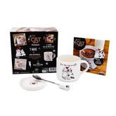 SWEETIE CAT BLANC. COFFRET AVEC 1 MUG ET SON COUVERCLE, 1 JOLIE CUILLERE ET 1 LIVRE DE RECETTES, Desgages Aurélie