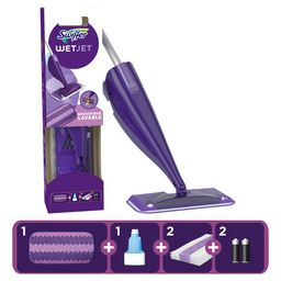 Swiffer WetJet est un système de spray tout-en-un prêt à l'emploi pour un nettoyage rapide et impeccable sur tous vos sols grâce à la puissance et à la commodité d'une lingette microfibre lavable. Il suffit de vaporiser, de nettoyer et voilà, c'est aussi simple que ça. Plus de seaux lourds à transporter. Il est doté d'une microfibre lavable que vous pouvez laver, utiliser et réutiliser encore et encore. Il suffit de fixer la lingette propre à l'appareil et d'appuyer pour vaporiser la solution nettoyante dans le vaporisateur à double buse au design unique. La solution nettoyante dissout et détache la saleté du sol, l'attrape et la retient pour de bon dans la lingette, sans laisser de traces. (Ne pas utiliser sur les parquets en bois brut, huilés ou cirés, les carrelages non scellés, les moquettes et les sols coulés)