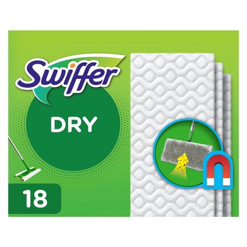 Les recharges de lingettes Swiffer se fixent au balai Sweeper pour attraper et retenir la saleté, les poussières et les poils sur tous les sols de votre maison. Elles sont 3 fois plus efficaces qu'un balai classique. Elles peuvent également être utilisées en complément de votre aspirateur, pour attraper la poussière fine restante, ou comme outil de nettoyage intermédiaire pour éviter de devoir nettoyer en profondeur trop souvent. Comment ? Pourquoi ? L'épaisseur des lingettes et leur motif particulier associés à leur action électrostatique permettent d'attraper toute la poussière et de la retenir dans la lingette. De plus, grâce à la tête pivotante à 360° du balai Swiffer, vous pouvez nettoyer partout, même les endroits difficiles d'accès comme sous le réfrigérateur, la cuisinière et le lave-vaisselle, sous les lits et le canapé, ainsi que les recoins et les bords parfois inaccessibles pour les balais classiques et les serpillières. N'est-ce pas merveilleux ? Avec les lingettes de nettoyage sèches Swiffer, le nettoyage n'a jamais été si facile et rapide. Bon à savoir : Elles conviennent en particulier pour récupérer les poils des animaux de compagnie, qui en perdent tout le temps, ou si vous êtes allergique à la poussière. Les lingettes Swiffer peuvent être utilisées sur toutes les surfaces dures telles que : les sols en linoléum, vinyle et céramique pouvant être cirés ou non, ainsi que les parquets vitrifiés.