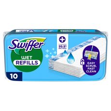 Les Lingettes Imprégnées Swiffer disposent de produits nettoyants puissants qui débarrassent les surfaces de la saleté puis l'emprisonnent. Gardez vos sols propres et parfumés avec une solution nettoyante unique qui dissout les taches tenaces, la saleté et la crasse et absorbe et la retient en profondeur dans la lingette et hors de vos sols, nettoyant facilement les sols de votre maison même dans les endroits difficiles d'accès. Grâce à son action de brossage améliorée, il est facile de se débarrasser des taches tenaces grâce à la bande grattante bleue. Nettoyez en un rien de temps avec Swiffer Wet ! Elles peuvent également être utilisées en toute sécurité sur les sols en bois. Ne pas utiliser les lingettes imprégnées du balai Swiffer sur les surfaces en bois brut, huilées ou cirées, les carrelages non scellés et les moquettes.