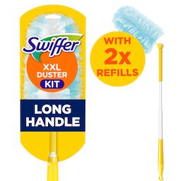 Le manche du plumeau Swiffer Duster XXL est un outil efficace contre 100 % de la poussière (fonctionne sur tous les types de poussière domestique) grâce à ses milliers de fibres duveteuses qui, telles un aimant, attrapent la poussière, la saleté et les poils sur toutes les surfaces. Le plumeau Swiffer Duster XXL atteint jusqu'à 90 cm et se niche dans les endroits hauts, bas et étroits, offrant ains un nettoyage plus minutieux même dans les endroits difficiles d'accès, tels que les étagères, les cadres et les radiateurs. Ce plumeau télescopique est doté d'une tête pivotante qui peut être ajustée et bloquée dans quatre positions différentes pour vous permettre d'accéder aux surfaces en angle. Ébouriffez le plumeau et nettoyez-le en un rien de temps avec Swiffer Duster ! Bon à savoir : il convient en particulier pour récupérer les poils des animaux de compagnie, qui en général en perdent tout le temps, ou si vous êtes allergique à la poussière. Il est tellement efficace que vous pourriez commencer à aimer dépoussiérer ! Les recharges Swiffer Duster sont compatibles avec les manches court et XXL.