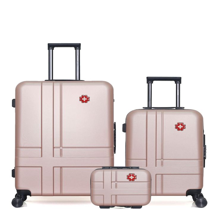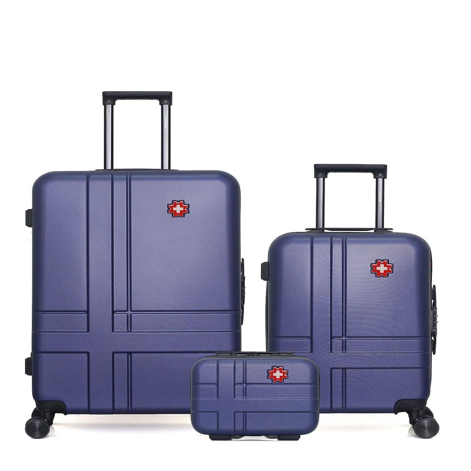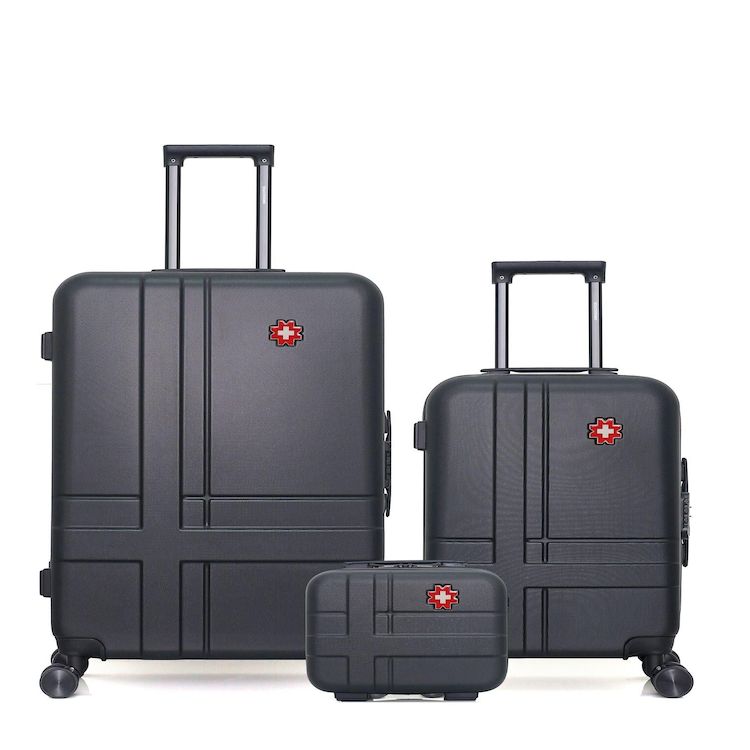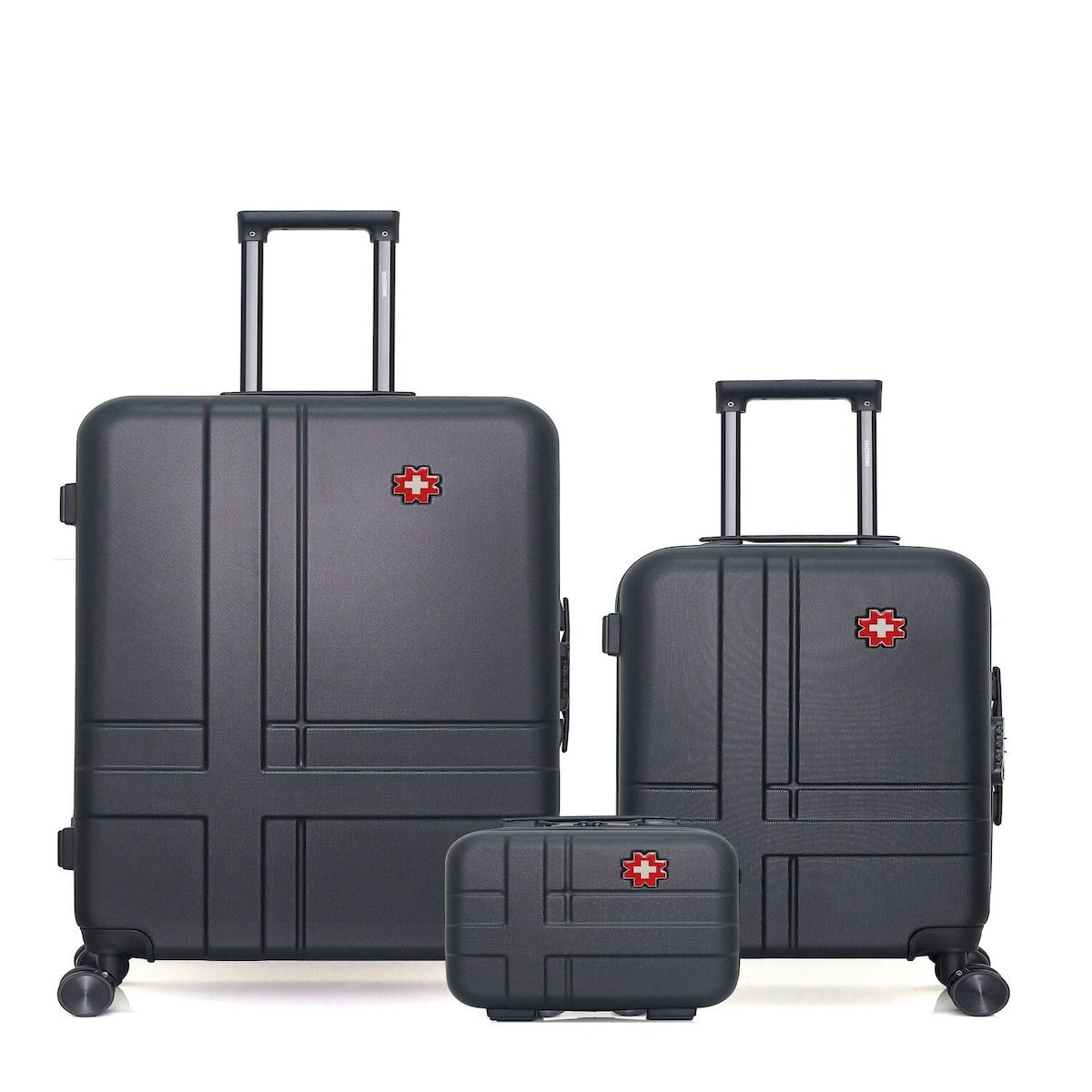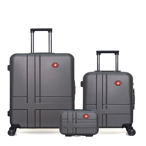 Le Lot de 3 Valises Rigides Grand Format, Cabine et Vanity USTER de Swiss Kopper combine design élégant, grande capacité et résistance pour tous vos voyages. Ce set complet garantit une protection optimale et un rangement efficace de vos affaires, idéal pour des séjours courts ou prolongés.Caractéri